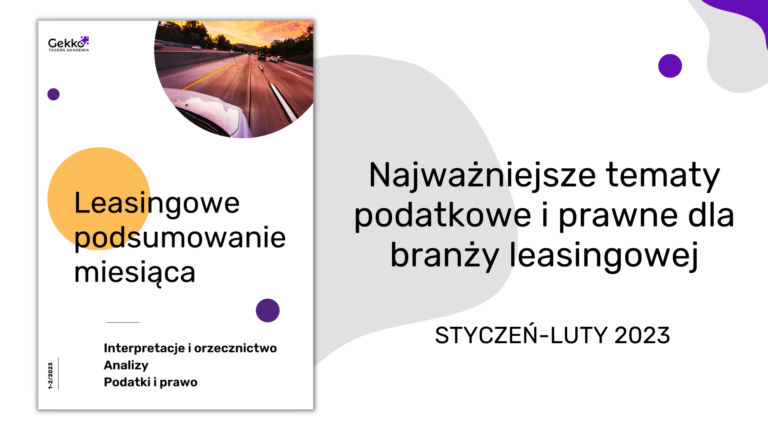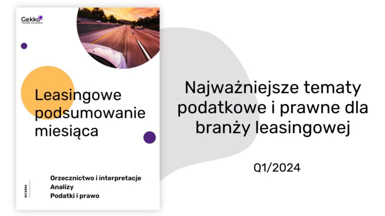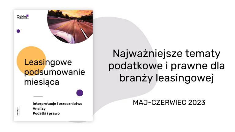 Mamy przyjemność zaprosić Państwa do lektury kolejnego wydania „Leasingowego podsumowania miesiąca”. Zebraliśmy w nim informacje dotyczące najważniejszych w ostatnim kwartale tematów podatkowych i prawnych dla spółek leasingowych. Jeśli zainteresuje Państwa dane zagadnienie, mogą Państwo kliknąć odnośnik, który znajduje się przy…