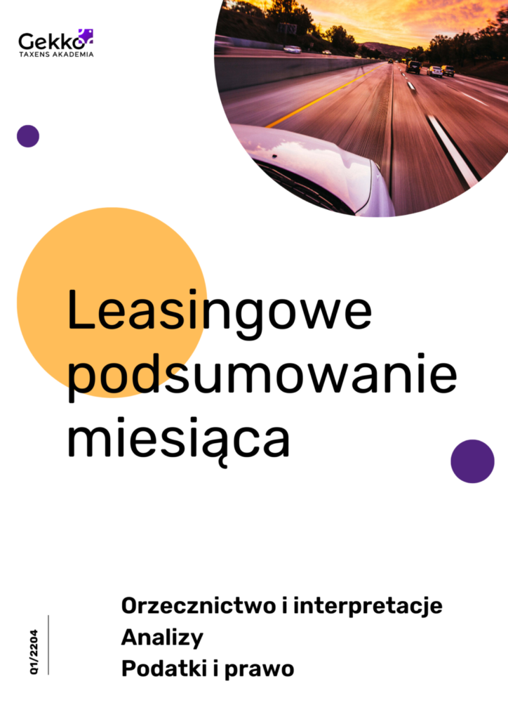 Zebraliśmy w nim informacje dotyczące najważniejszych w ostatnim kwartale tematów podatkowych i prawnych dla spółek leasingowych. Jeśli zainteresuje Państwa dane zagadnienie, mogą Państwo kliknąć odnośnik, który znajduje się przy notce i przeczytać bardziej obszerne opracowanie dotyczące tego tematu, przygotowane przez ekspertów Gekko Taxens.